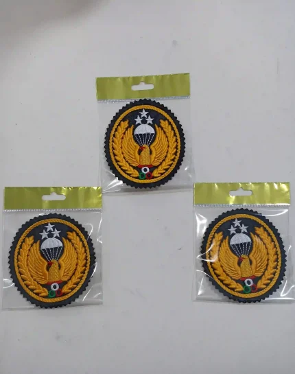 آرم کلاه سپاه نخ مشکی پارچه خاکی